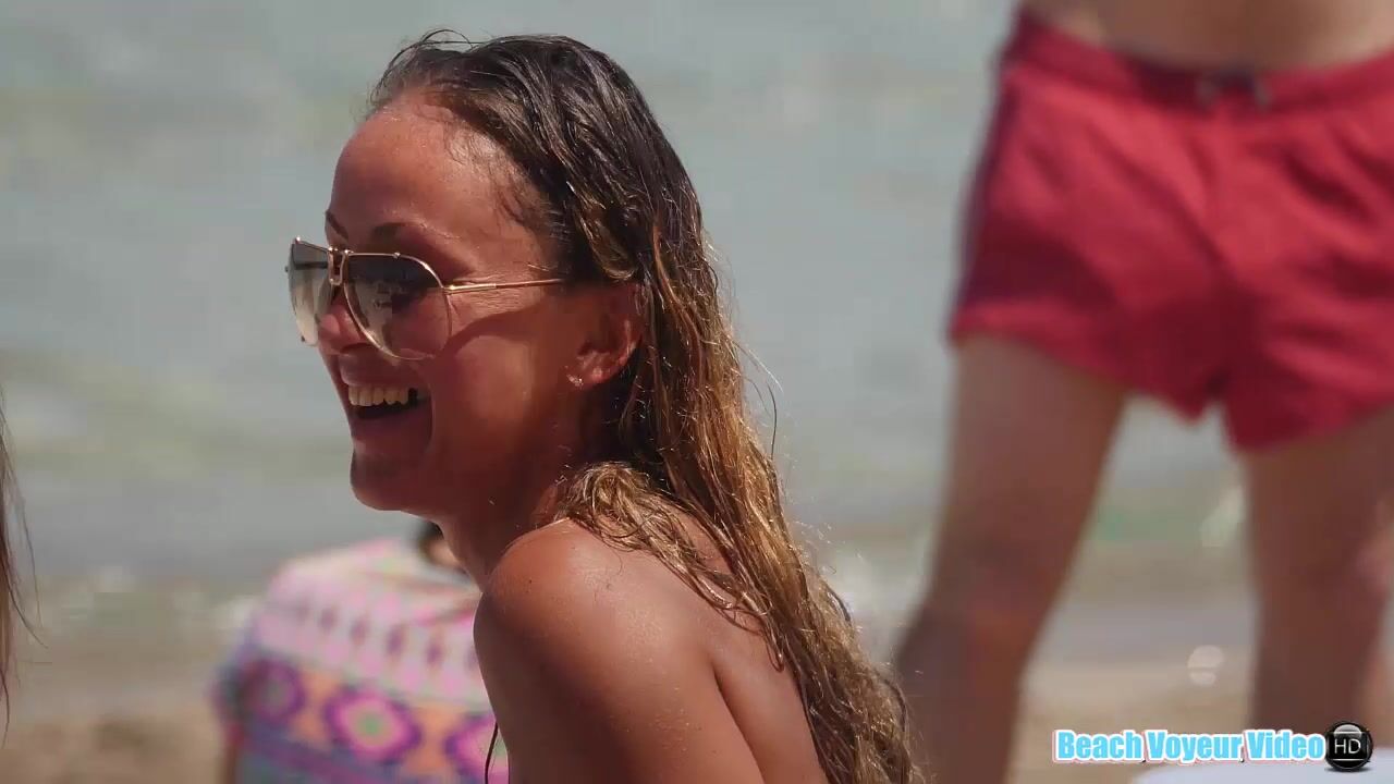 Hot Nudist Girl Topless showing boobs on nude beach 166
