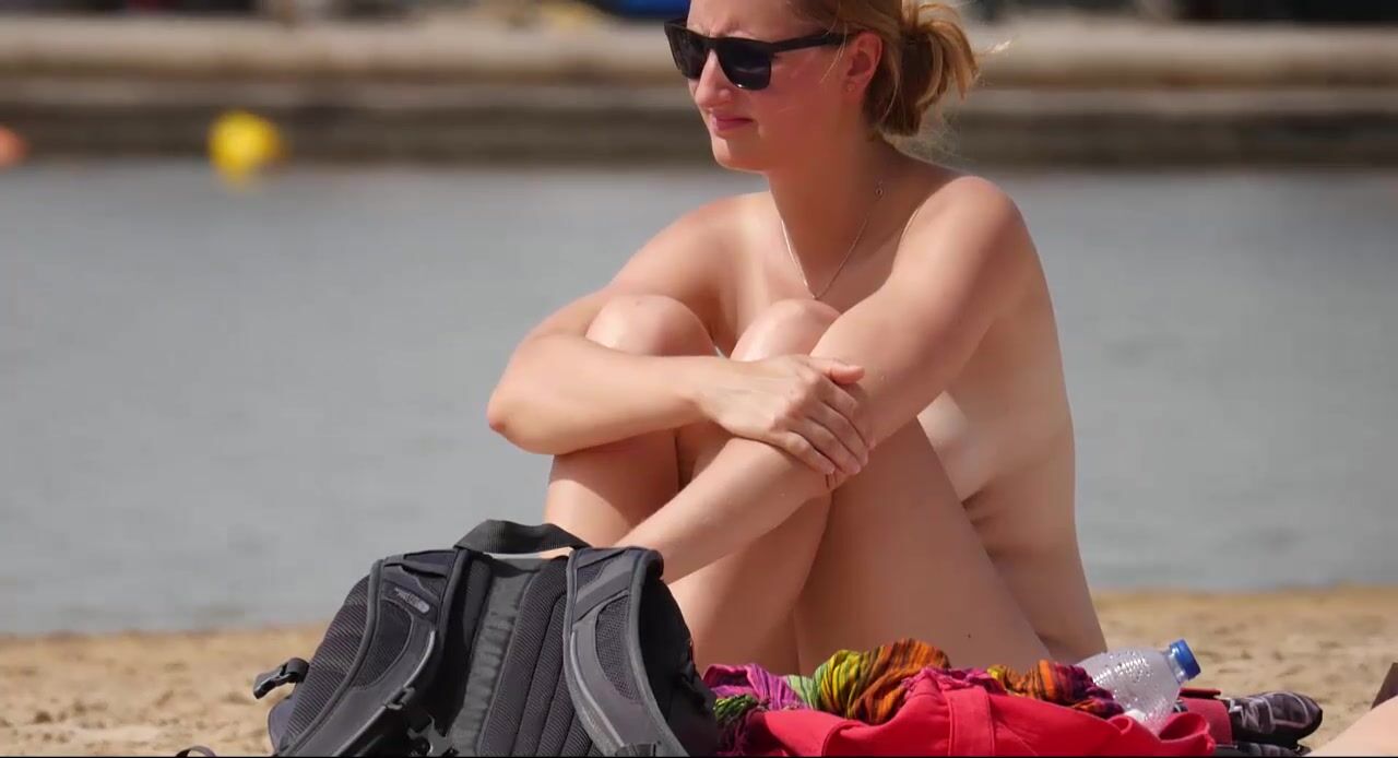 Hot Nudist Girl Topless showing boobs on nude beach 160