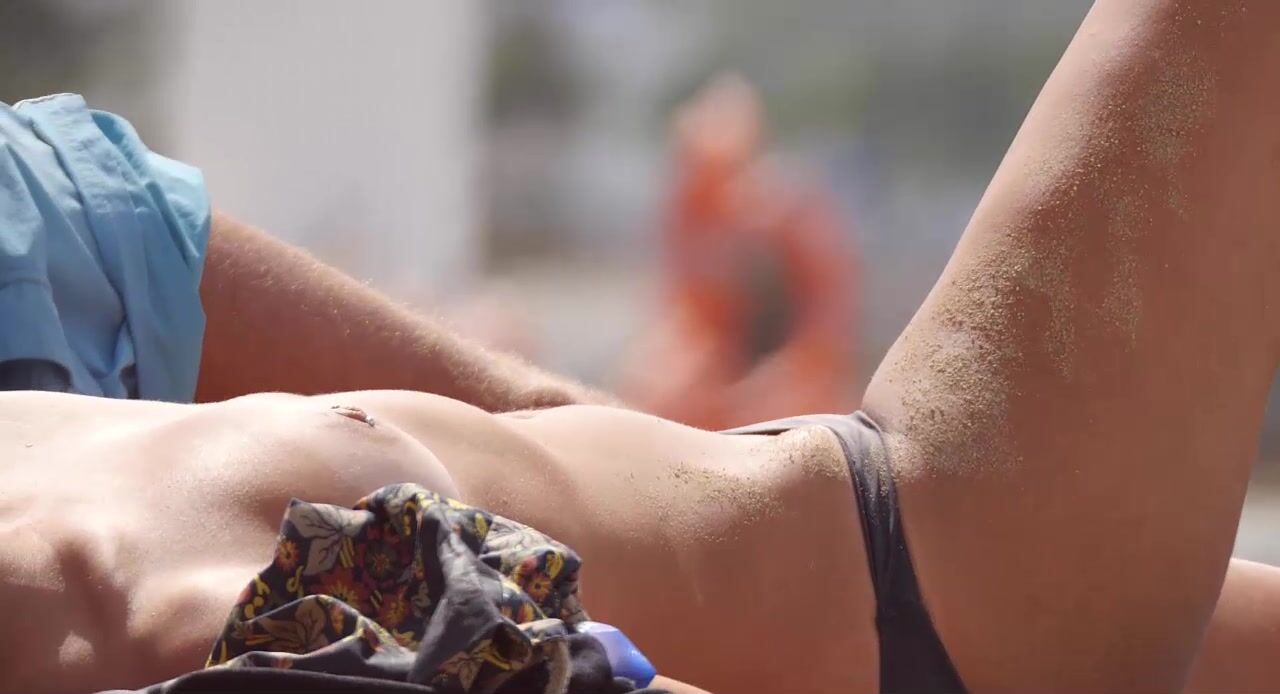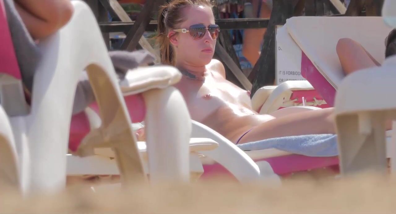 Hot Nudist Girl Topless showing boobs on nude beach 123