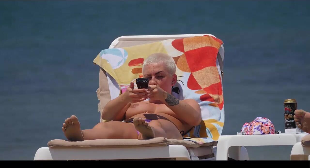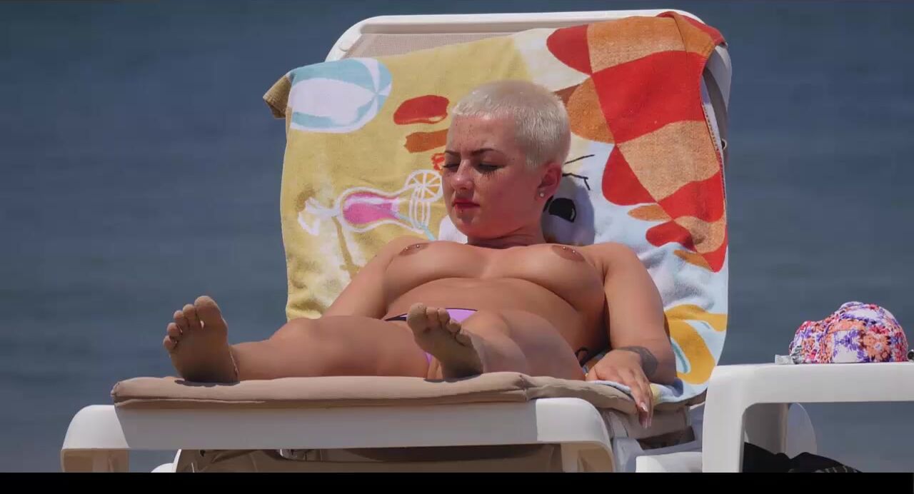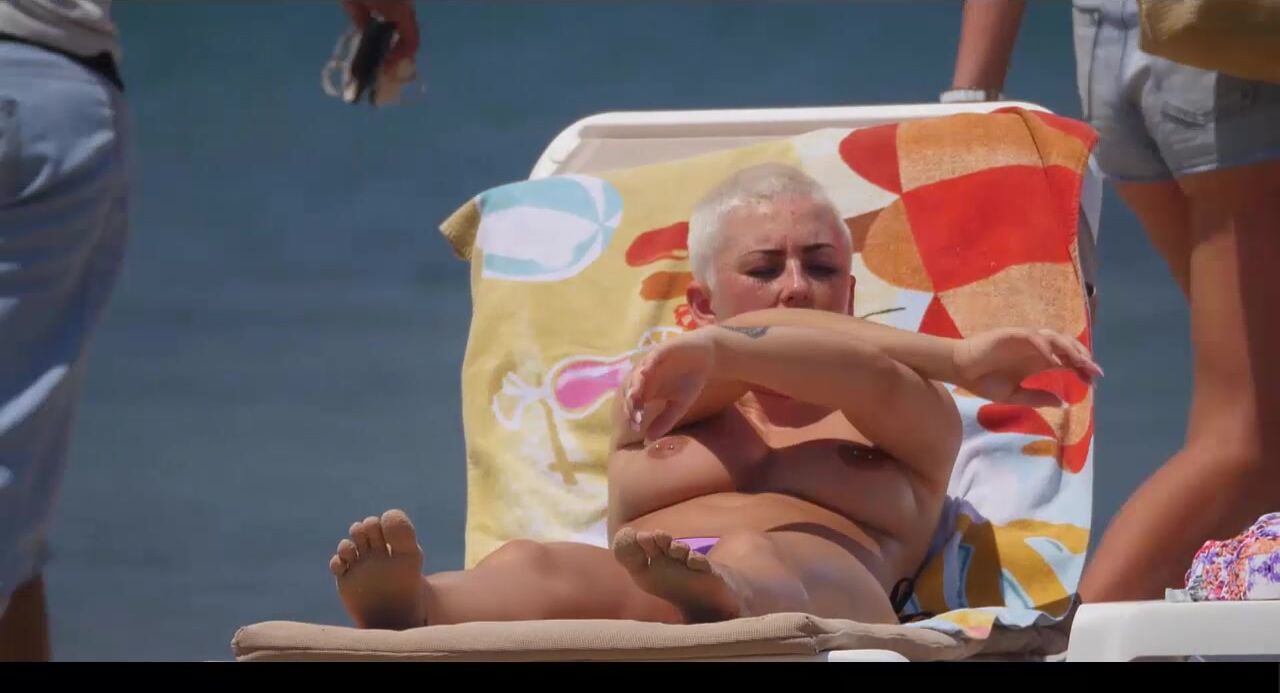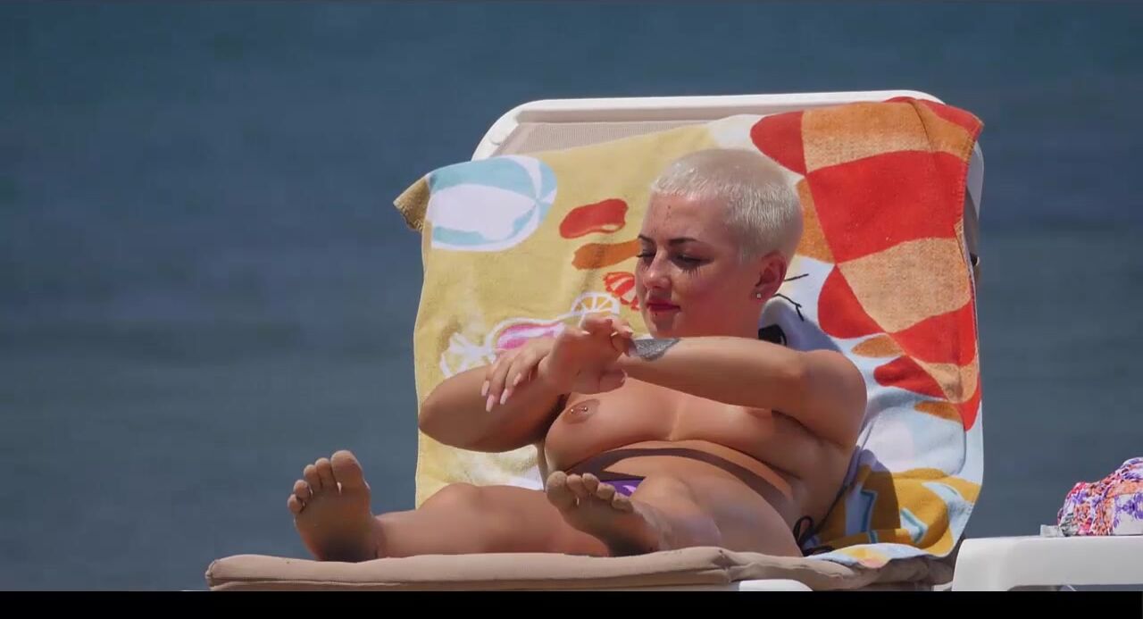 Hot Nudist Girl Topless showing boobs on nude beach 209