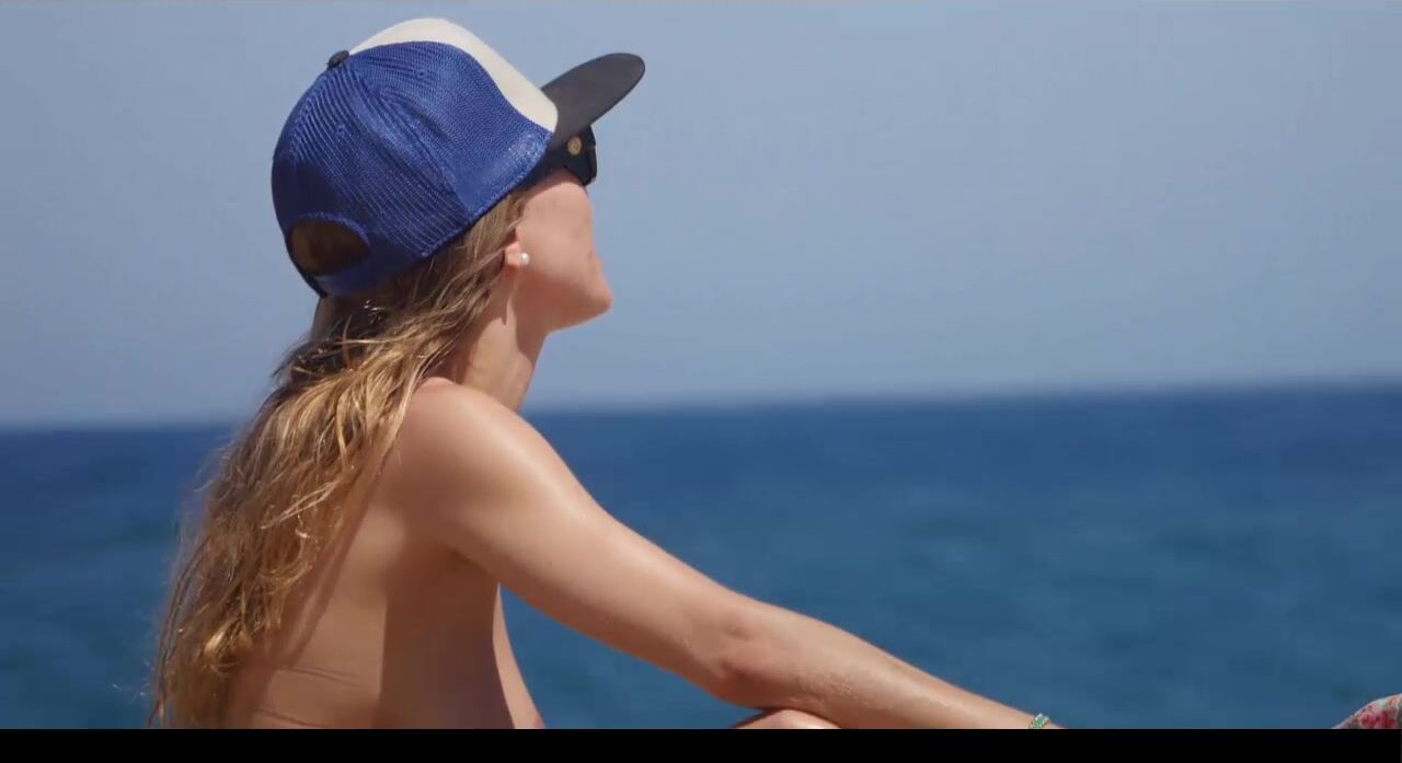 Hot Nudist Girl Topless showing boobs on nude beach 206