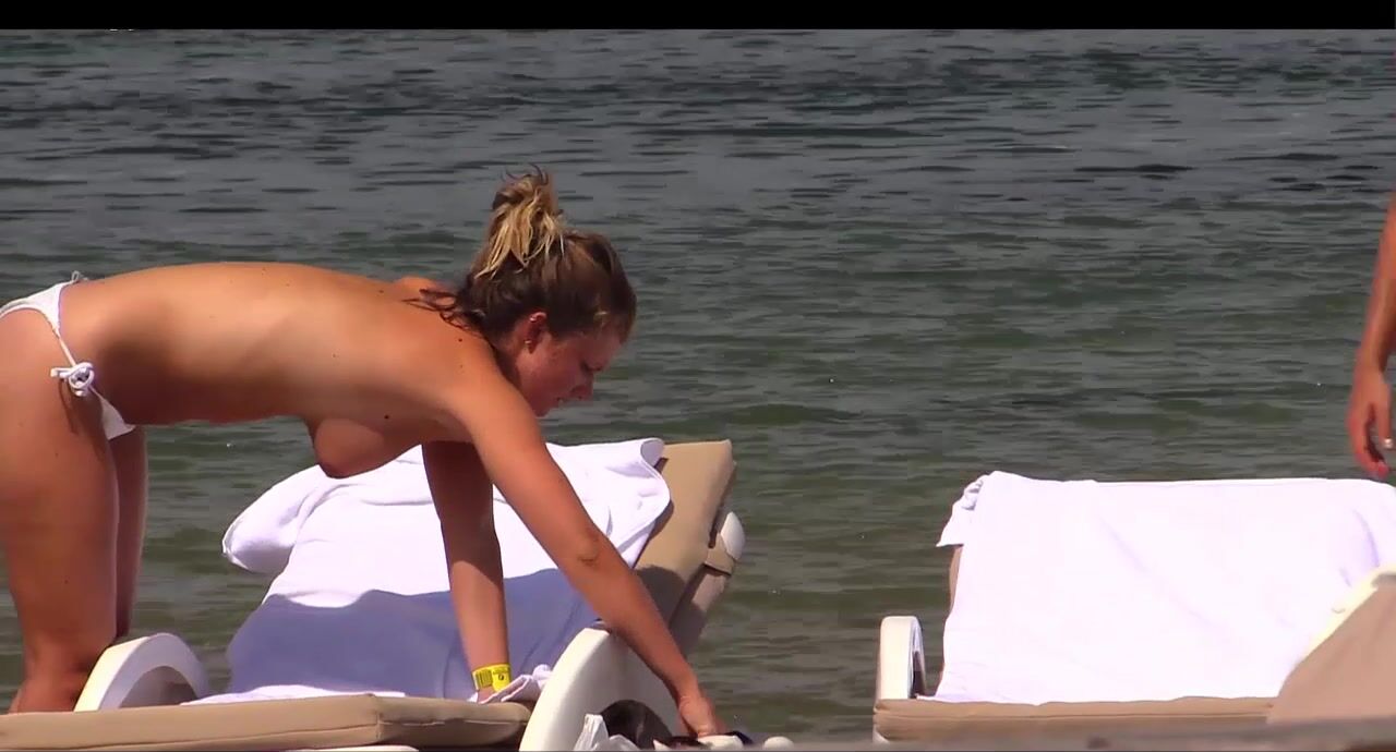 Hot Nudist Girl Topless showing boobs on nude beach 208