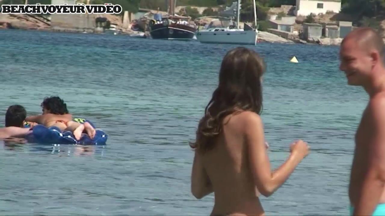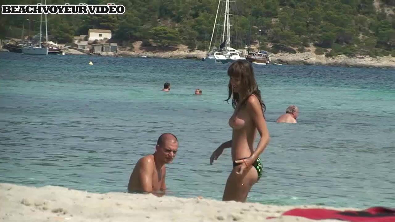 Hot Nudist Girl Topless showing boobs on nude beach 616