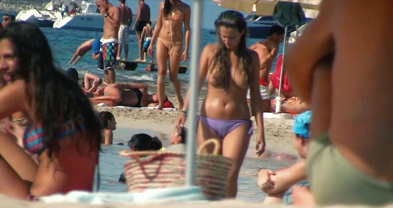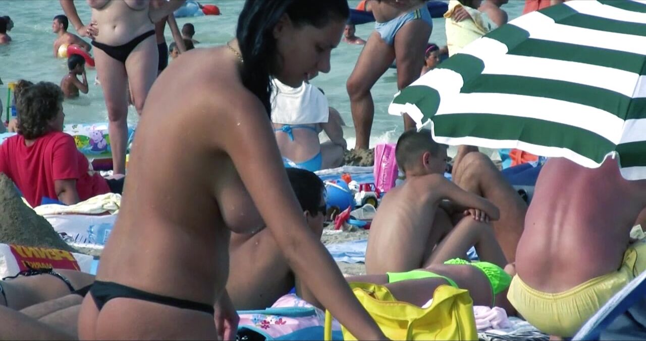 Sexy Nudist Babe Topless showing tits on nude beach 975