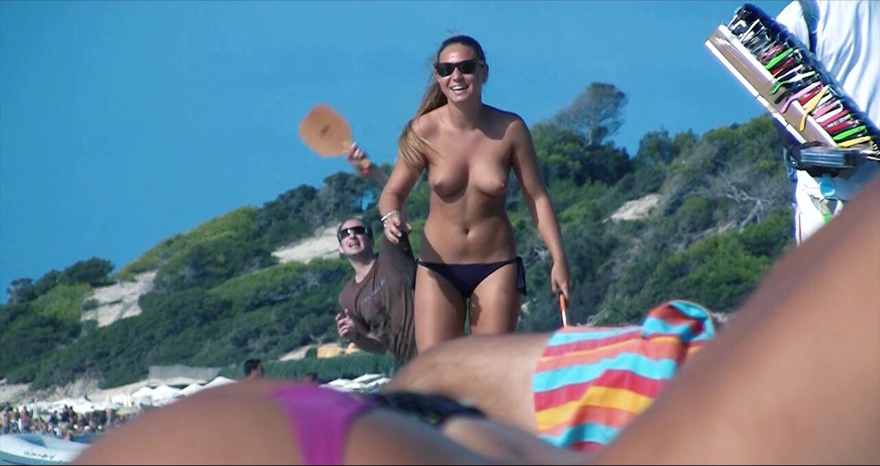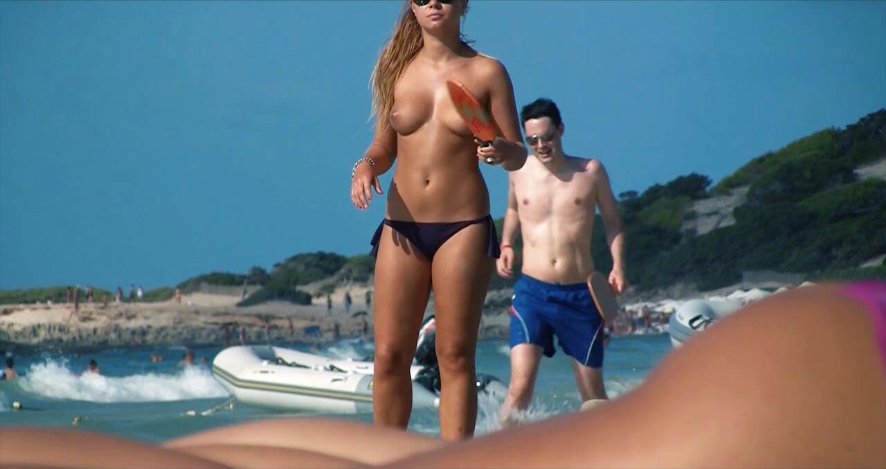 Sexy Nudist Babe Topless showing tits on nude beach 970
