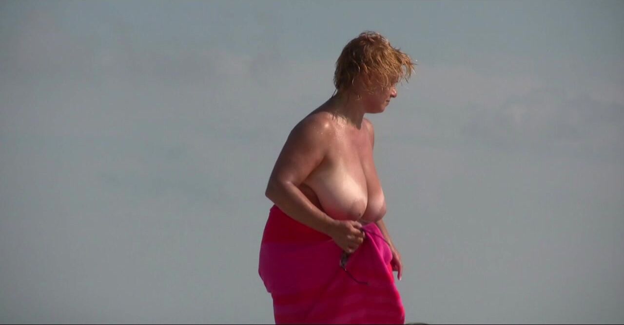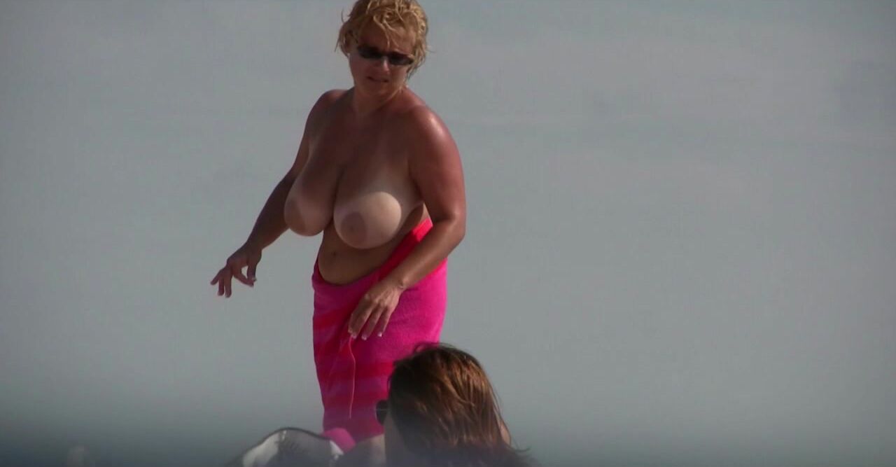 Sexy Nudist Babe Topless showing tits on nude beach 936