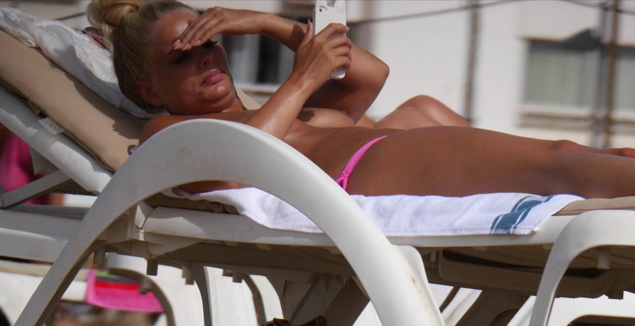 Sexy Nudist Babe Topless showing tits on nude beach 896