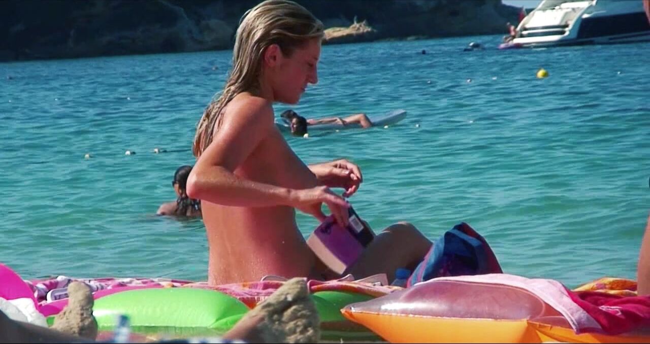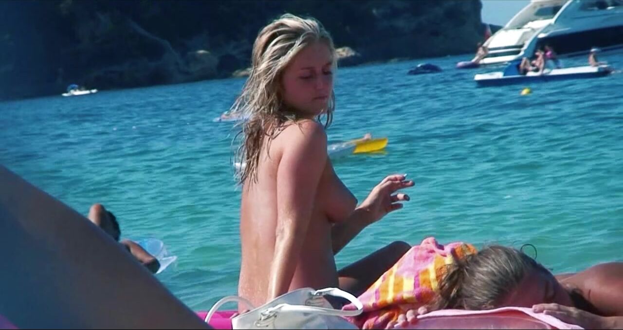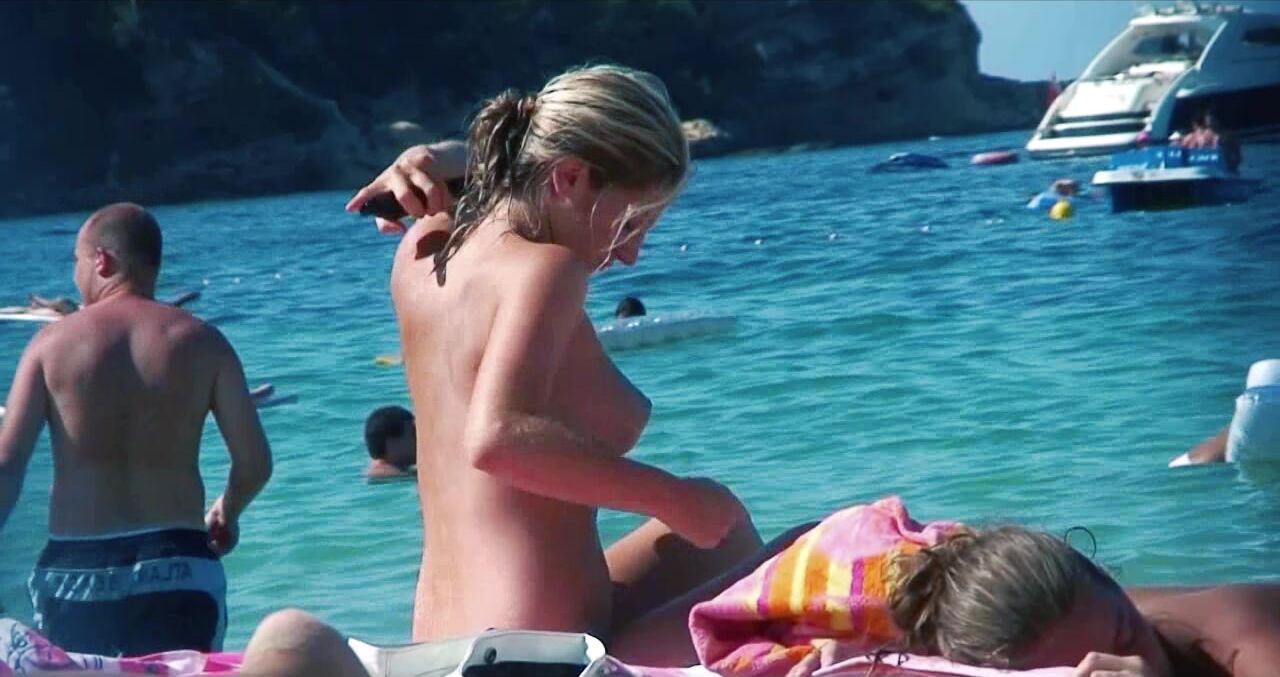 Sexy Nudist Babe Topless showing tits on nude beach 967