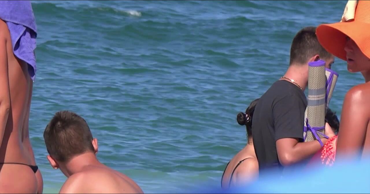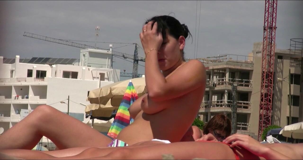 Sexy Nudist Babe Topless showing tits on nude beach 1050