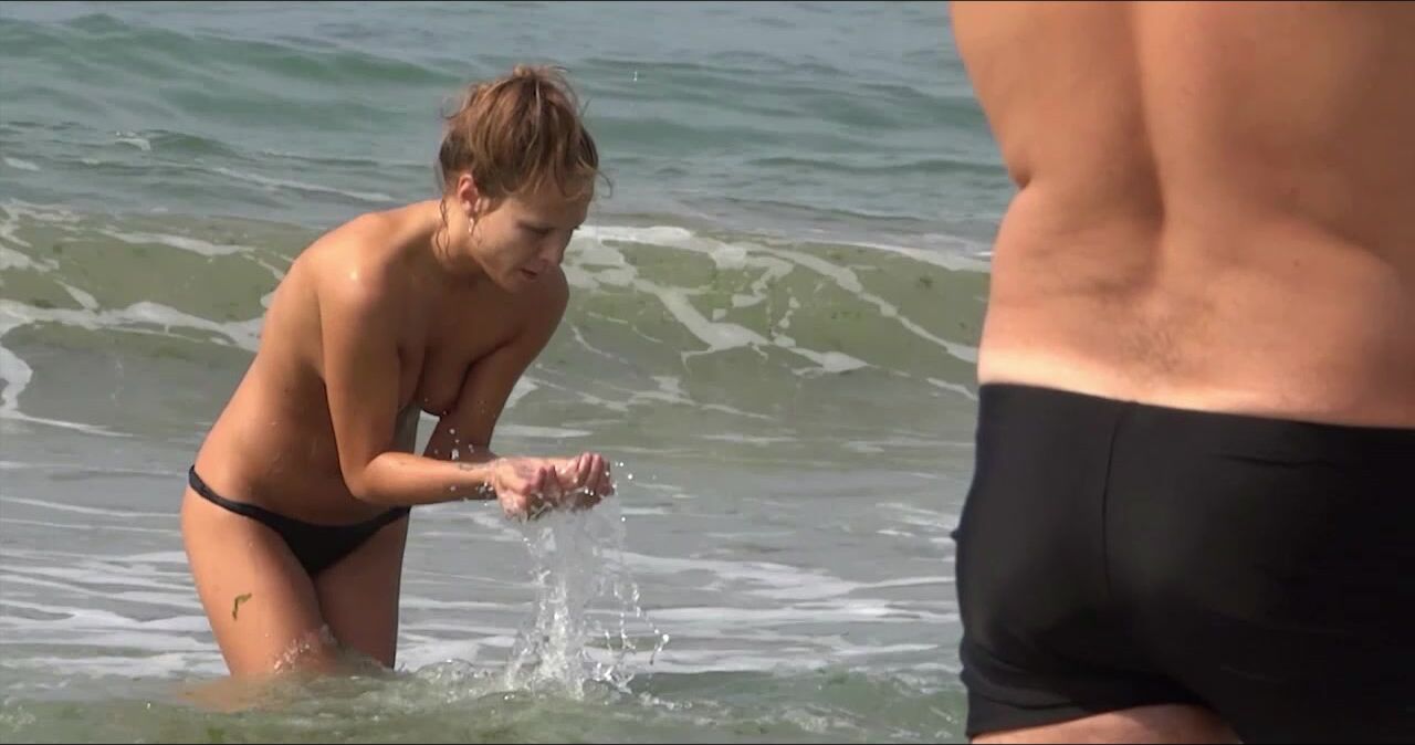 Sexy Nudist Babe Topless showing tits on nude beach 1024