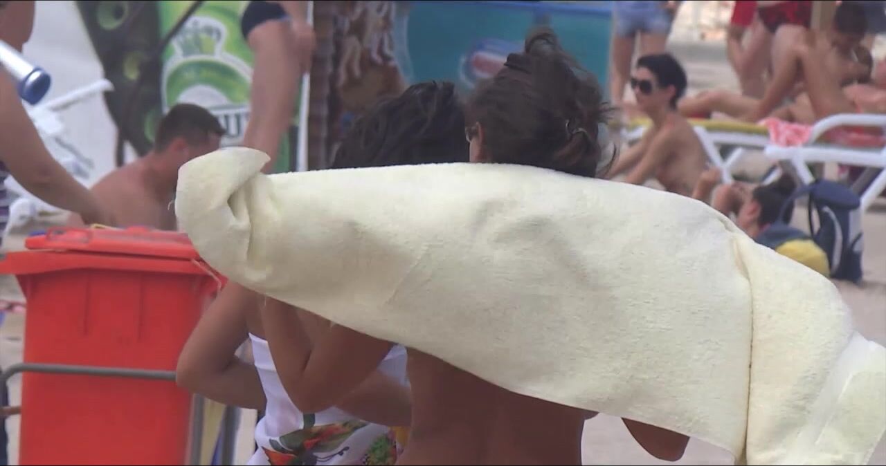 Sexy Nudist Babe Topless showing tits on nude beach 1048