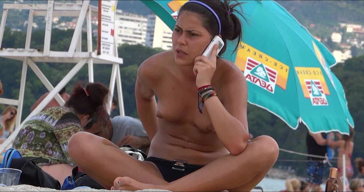 Juicy Nudist Girl Topless showing perfect boobs on nude beach in public 1068