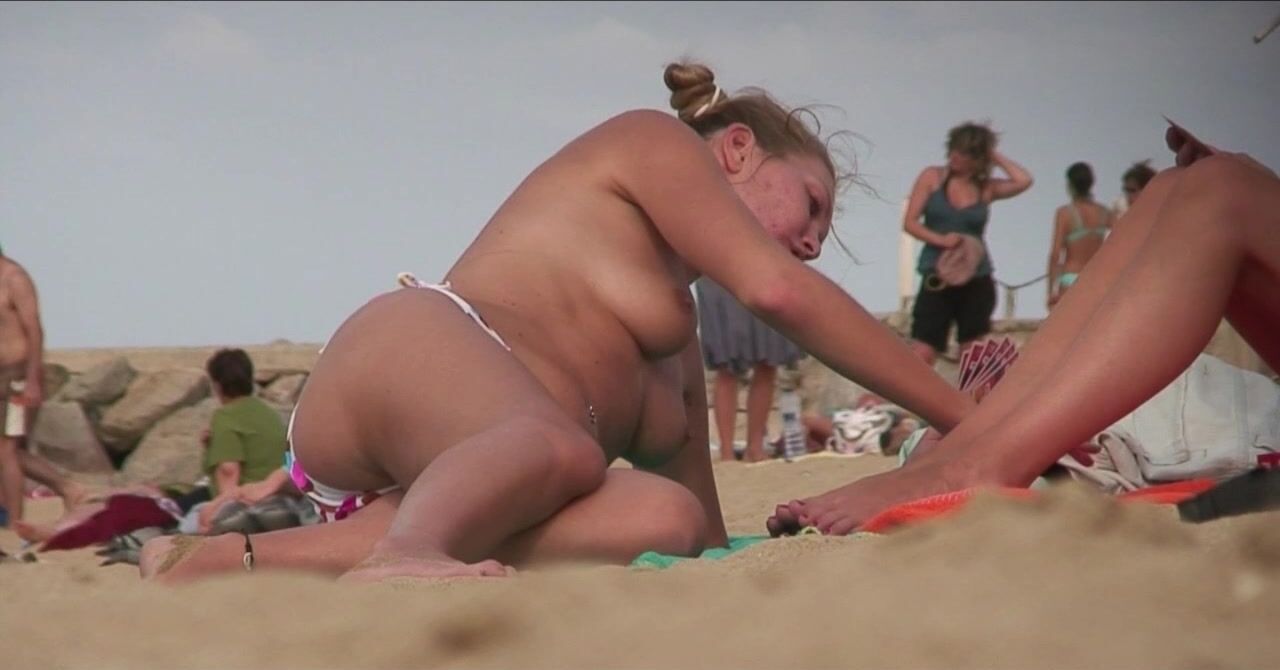 Juicy Nudist Girl Topless showing perfect boobs on nude beach in public 1152