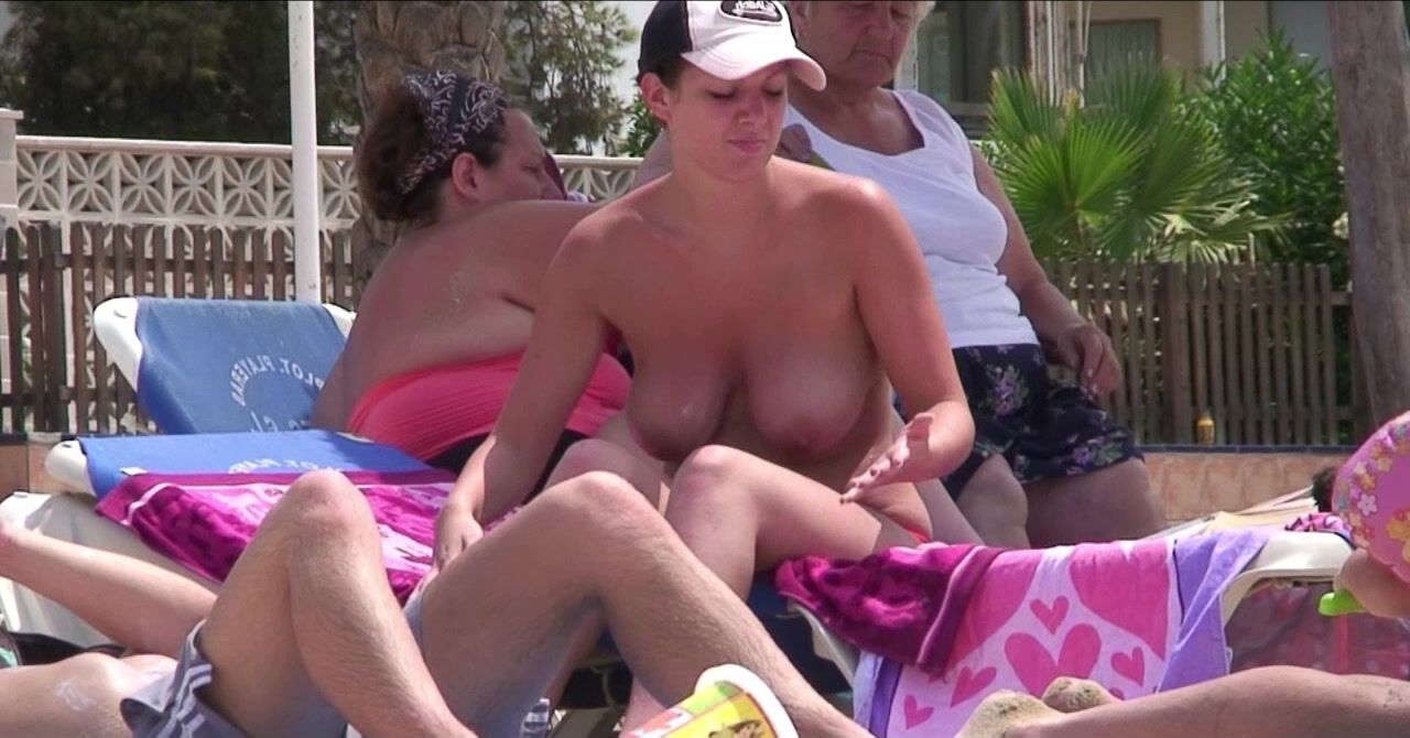 Juicy Nudist Girl Topless showing perfect boobs on nude beach in public 1136