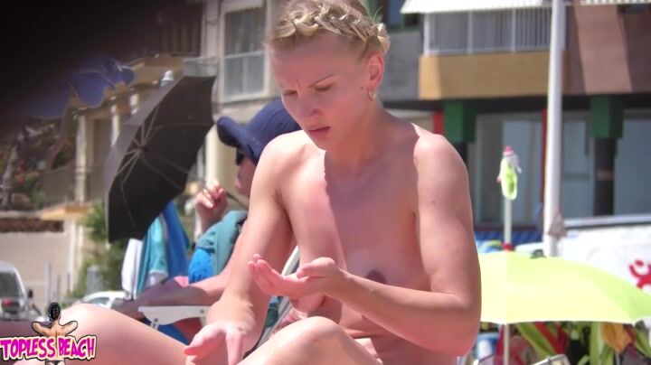 Juicy Nudist Girl Topless showing perfect boobs on nude beach in public 1387