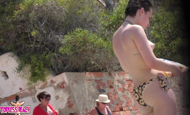 Juicy Nudist Girl Topless showing perfect boobs on nude beach in public 1479