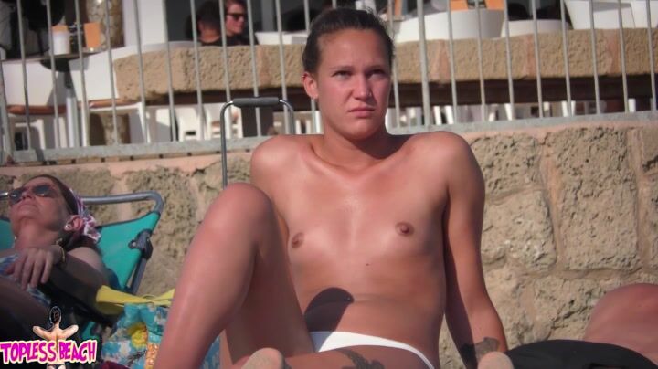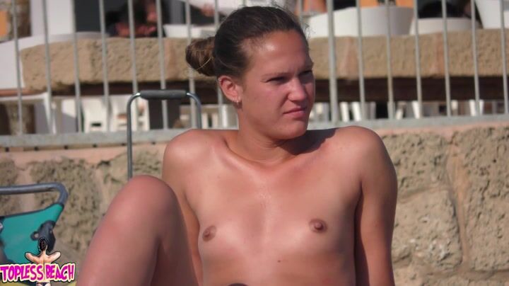 Juicy Nudist Girl Topless showing perfect boobs on nude beach in public 1394