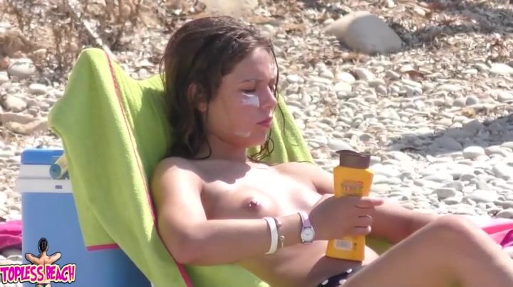 Juicy Nudist Girl Topless showing perfect boobs on nude beach in public 1397