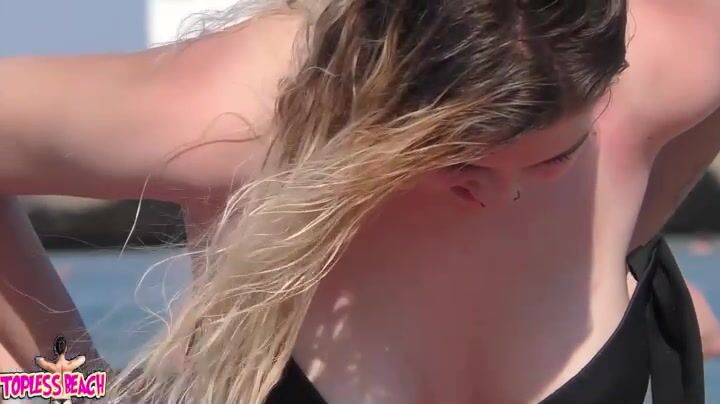 Juicy Nudist Girl Topless showing perfect boobs on nude beach in public 1366