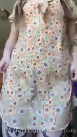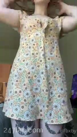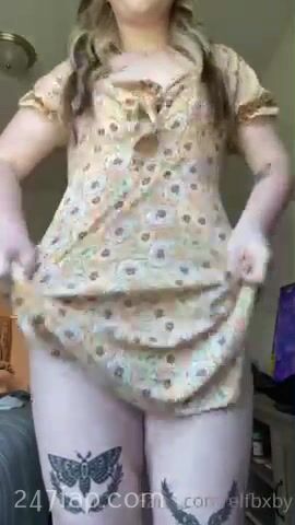 Elfbxby flash her boobs and shaved yoni under her dress