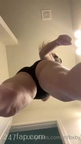 Elfbxby flash her pink twat clit under her black panty