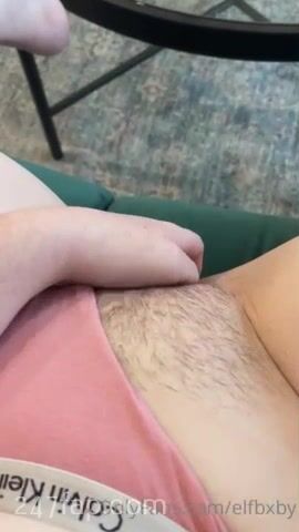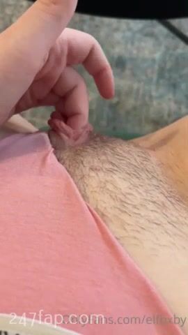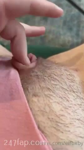 Elfbxby fingering her half shaved slight hairy vagina in the first person view
