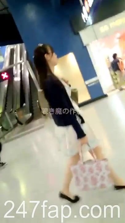 Low Angle Peeping Voyeur with Face Young Amateur Chinese Asian Girl in Public 498x