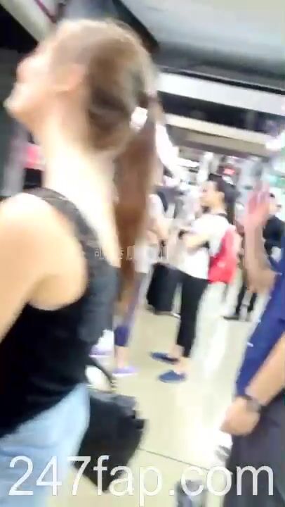 Peeping on Tits (Showing Face) Young Amateur Chinese Asian Girl in Public 24